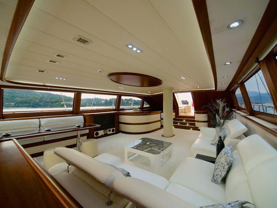 • Air – Conditioner • VHF Radio-Telephone • Mobile Telephone • 2 Service boats with 150HP and 9.9 HP • GPS-Radar • Windsurf and Canoes• Refrigerator – Ice Machine • TV & DVD Player In All Cabins•Satellite-Tv-System • Deepfreeze• •Generator: 2×44 KWA Onan • 22,5KWA coast generator • • Water ski(optional) •Jet Ski(optional) •Ringo•Jacuzzi on deck